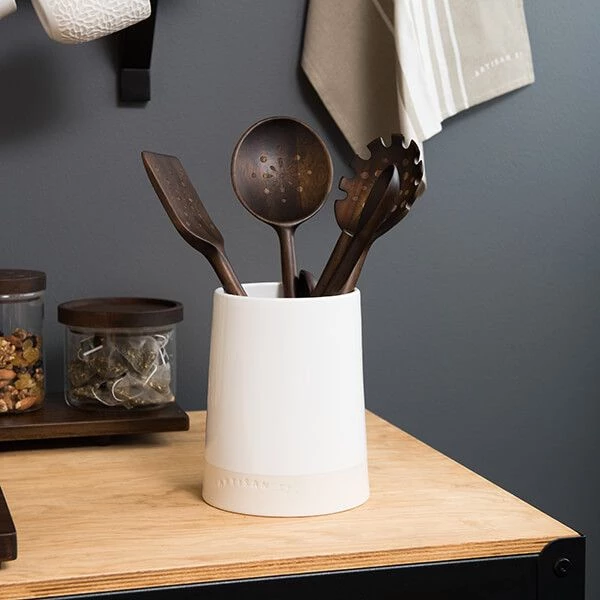 The Artisan Street utensil jar is made from ceramic and is ideal for storing a range of large utensils within easy reach when cooking or baking.