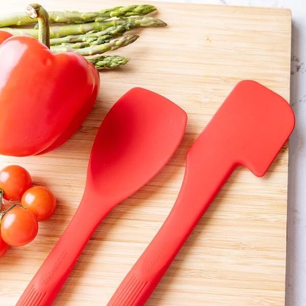 This Colourworks red 28cm spatula is made from food safe BPA free silicone with a tough nylon core and a high quality coating.