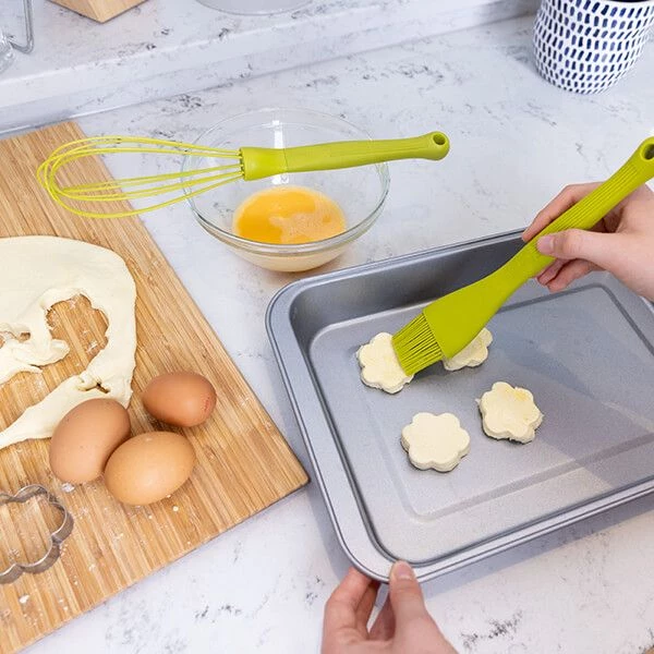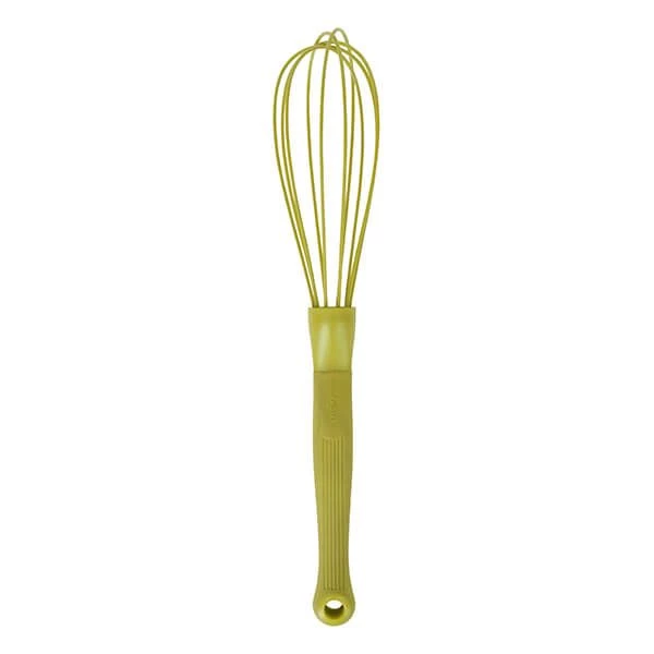 The silicone green whisk is heat resistant up to 260°C and is also suitable for dishwasher cleaning.