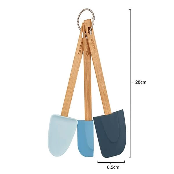 The handles of the spatula set are made from bamboo wood which is naturally antibacterial and a sustainable and biodegradable material. Complete with a hole in the handle the spatulas can also be hung on a hook or a utensil hanging rack using the provided ring.