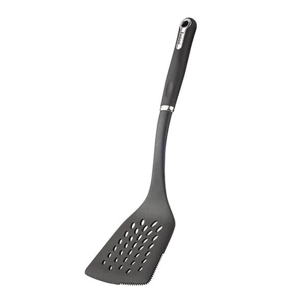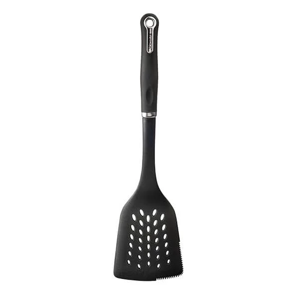 The Fusion nylon slotted turner is ideal for cooking fish, meat and turning vegetables in a stir fry. The slotted turner features a serrated edge for easily dividing and serving portion of meat and fish.