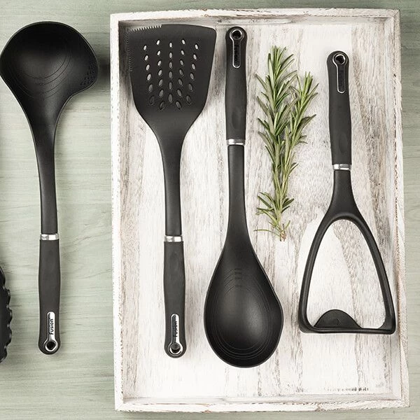 The nylon slotted turner is ideal for use with non-stick cooking surfaces and has an ergonomic handle for a firm and comfortable grip when in use.