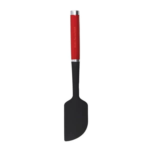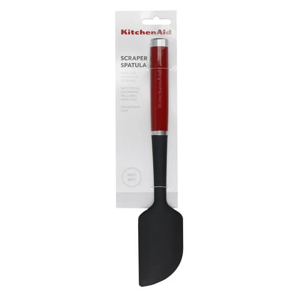 Crafted from premium grade materials, this KitchenAid Silicone Scraper Spatula in Empire Red is ideal for scraping every last bit of batter from mixing bowls as well as mixing ingredients together. The silicone head is heat resistant to 260°C and safe to use on all types of cookware and bakeware, including ceramic, cast iron and non-stick. The glossy handle includes a debossed logo and a satin chrome-plated bolster.