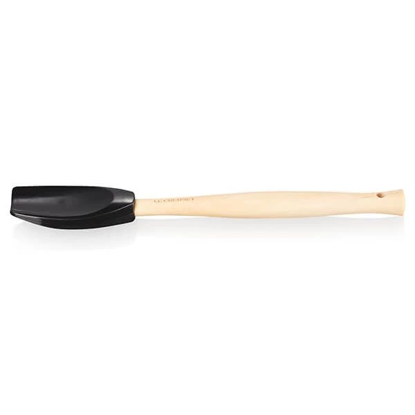 The Le Creuset Spatula Spoon in Black is both practical and versatile. The spoon shaped design of the silicone head makes it perfect for stirring, scooping and portioning food.