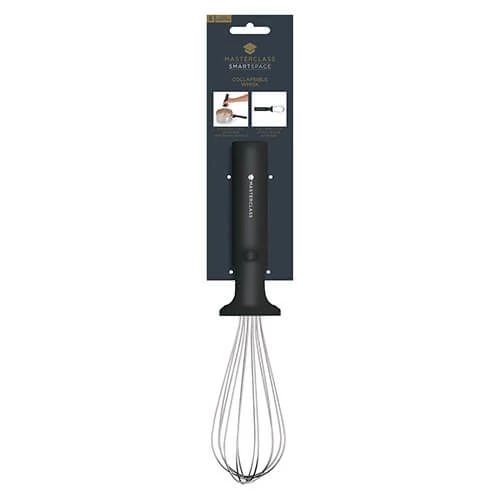 This MasterClass Smart Space Collapsible Whisk features a stainless steel balloon whisk head which is perfect for whipping cream whisking eggs and other mixes.