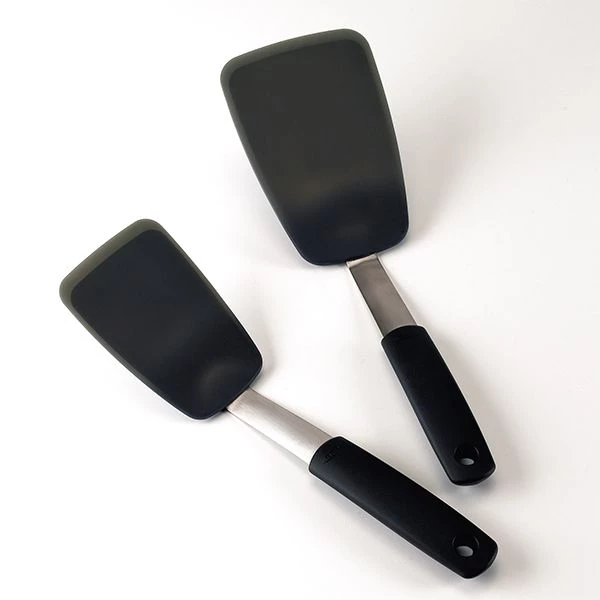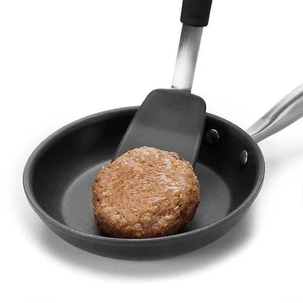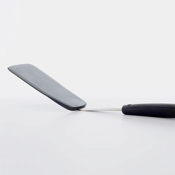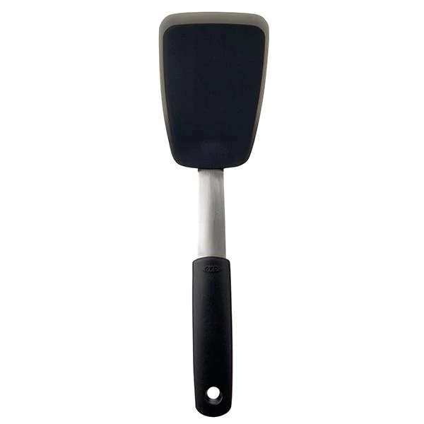 This OXO Good Grips Silicone Flexible Turner has thin and flexible edges that glide easily under foods in the pan to keep them intact. Ideal for sautéing, flipping eggs and more, this turner combines the strength of stainless steel with the heat resistance and non-stick friendliness of a silicone outer layer. Dimensions 28.5cm x 7.92cm x 8.25cm. Dishwasher safe. Heat resistant silicone.